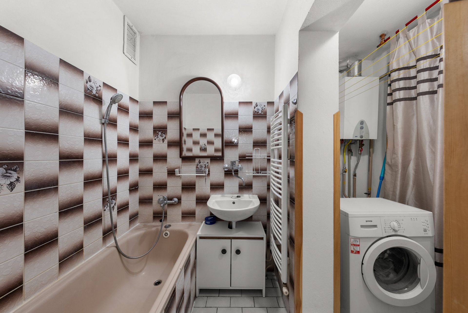 Byt má vlastní plynový kotel Baxi jak pro topení, tak pro ohřev teplé vody.